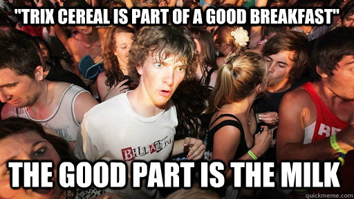 "Trix Cereal is part of a good breakfast" The good part is the milk