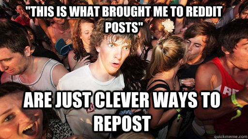 "This is what brought me to reddit postS" Are just clever ways to repost