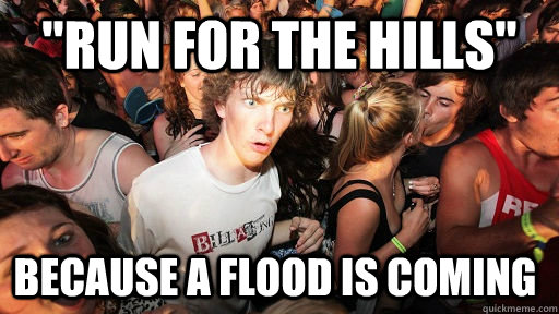 "Run for the hills" because a flood is coming