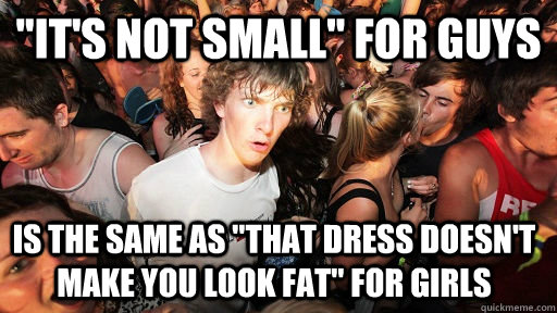 "It's not small" for guys is the same as "That dress doesn't make you look fat" for girls