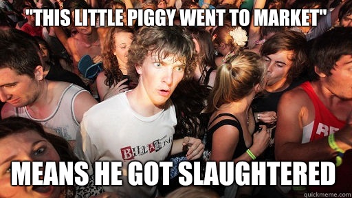 "This little piggy went to market" Means he got slaughtered