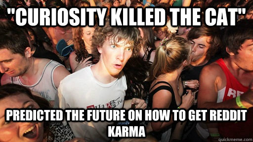 "curiosity killed the cat" predicted the future on how to get reddit karma