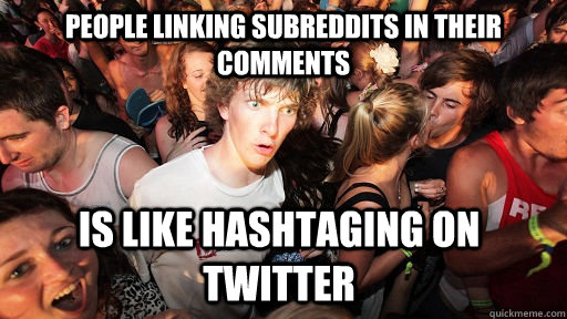 People linking subreddits in their comments is like hashtaging on twitter