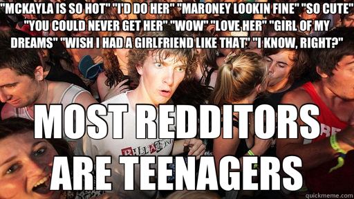 "MCKAYLA IS SO HOT" "I'D DO HER" "MARONEY LOOKIN FINE" "SO CUTE" "YOU COULD NEVER GET HER" "WOW" "LOVE HER" "GIRL OF MY DREAMS" "WISH I HAD A GIRLFRIEND LIKE THAT" "I KNOW, RIGHT?" MOST REDDITORS ARE TEENAGERS