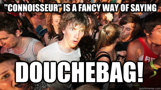 "connoisseur" is a fancy way of saying DOUCHEBAG!