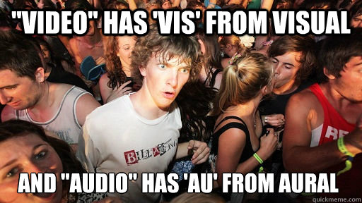 "Video" has 'vis' from visual And "audio" has 'au' from aural