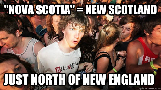 "Nova Scotia" = New Scotland Just north of New England