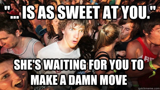 "... is as sweet at you." She's waiting for you to make a damn move