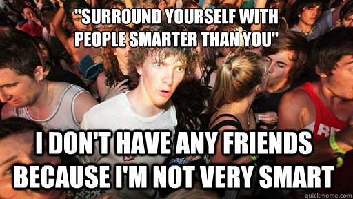 "Surround yourself with people smarter than you" I don't have any friends because I'm not very smart