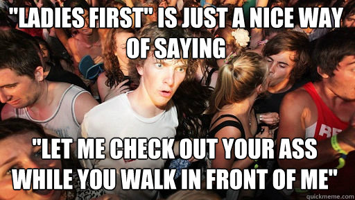 "Ladies first" is just a nice way of saying "Let me check out your ass while you walk in front of me"