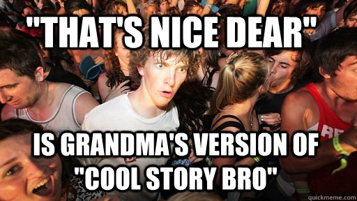 "That's nice dear" IS GRANDMA'S VERSION OF "COOL STORY BRO"