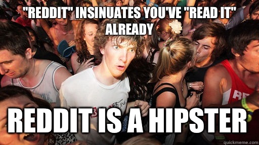"Reddit" insinuates you've "read it" already Reddit is a hipster