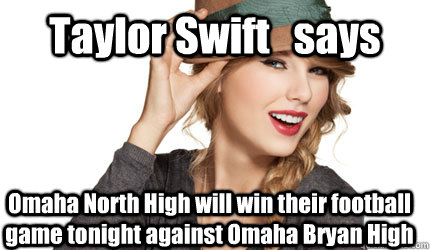Taylor Swift says Omaha North High will win their football game tonight against Omaha Bryan High