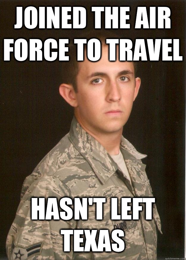 Joined the Air Force to travel HASN'T LEFT TEXAS