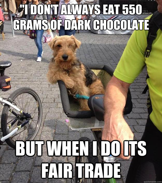 "I don't always eat 550 grams of dark chocolate But when I do its fair trade