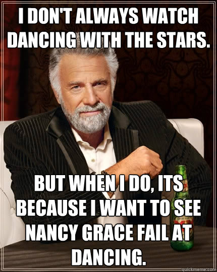 I don't always watch dancing with the stars. But when I do, its because I want to see Nancy Grace fail at dancing.