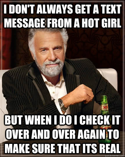 I don't always get a text message from a hot girl but when I do i check it over and over again to make sure that its real
