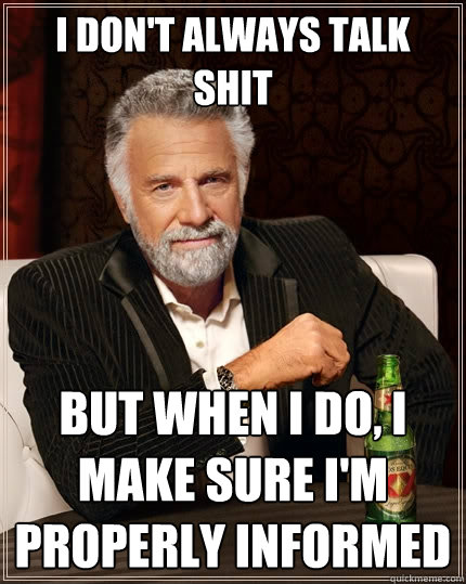 I don't always talk shit but when I do, I make sure I'm properly informed