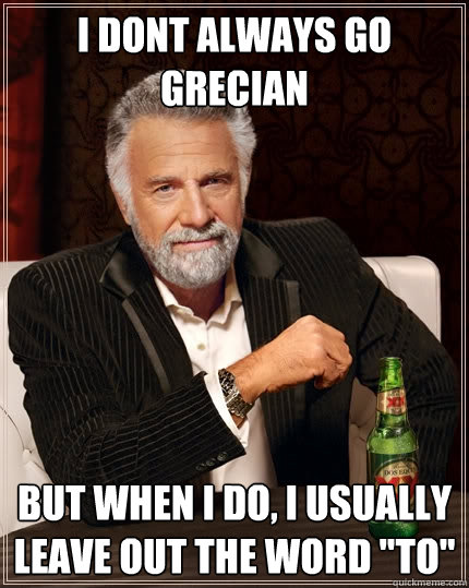 I dont always go grecian But When I do, i usually leave out the word "to"
