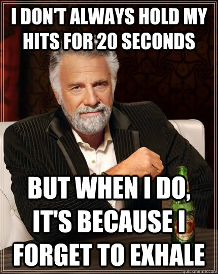 I don't always hold my hits for 20 seconds but when I do, it's because I forget to exhale