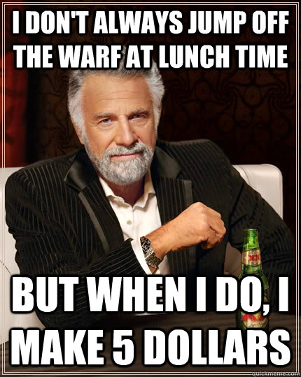 I don't always jump off the warf at lunch time But when I do, I make 5 dollars