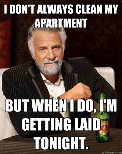 I don't always clean my apartment but when I do, I'm getting laid tonight.