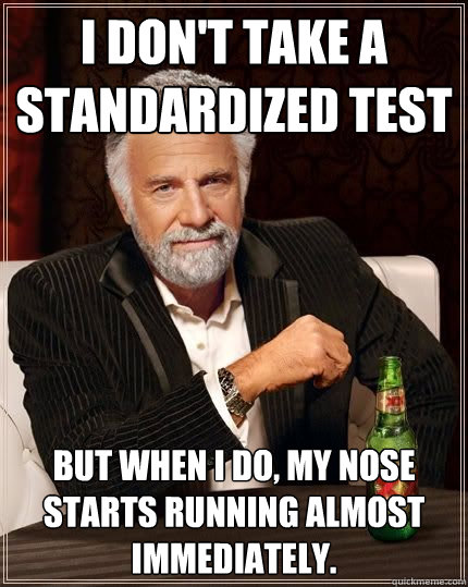 I don't take a standardized test but when i do, my nose starts running almost immediately.