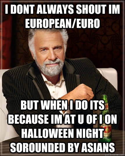 I dont always shout im european/euro But when i do its because im at U of i on halloween night sorounded by asians