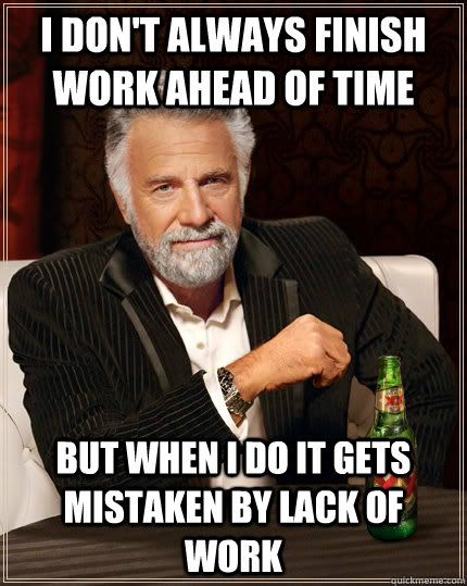 I don't always finish work ahead of time but when I do it gets mistaken by lack of work