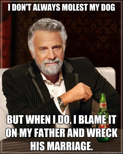 I don't always molest my dog but when I do, I blame it on my father and wreck his marriage.