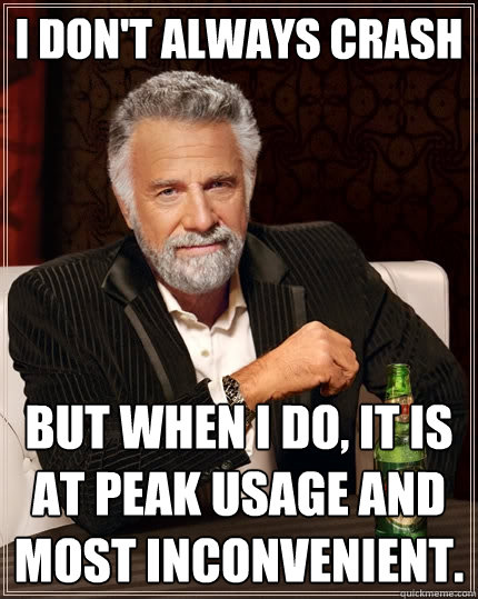 I don't always crash But when I do, it is at peak usage and most inconvenient.