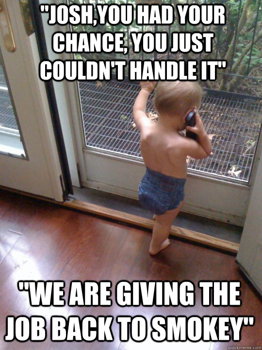 "Josh,you had your chance, You just couldn't handle it" "we are giving the job back to smokey"