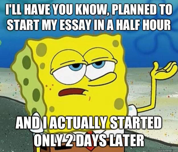 I'll have you know, planned to start my essay in a half hour and I actually started only 2 days later