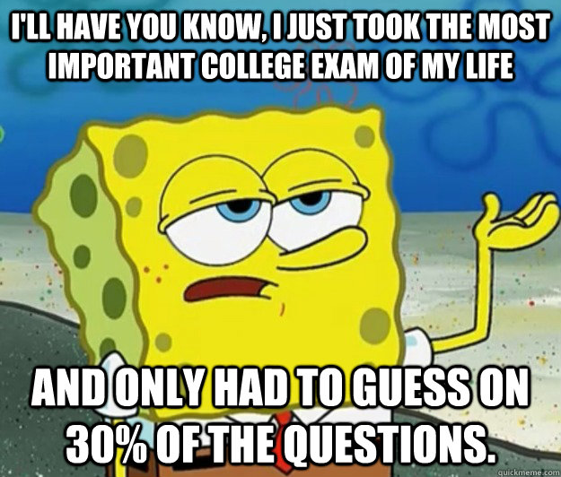 I'll have you know, I just took the most important college exam of my life And only had to guess on 30% of the questions.