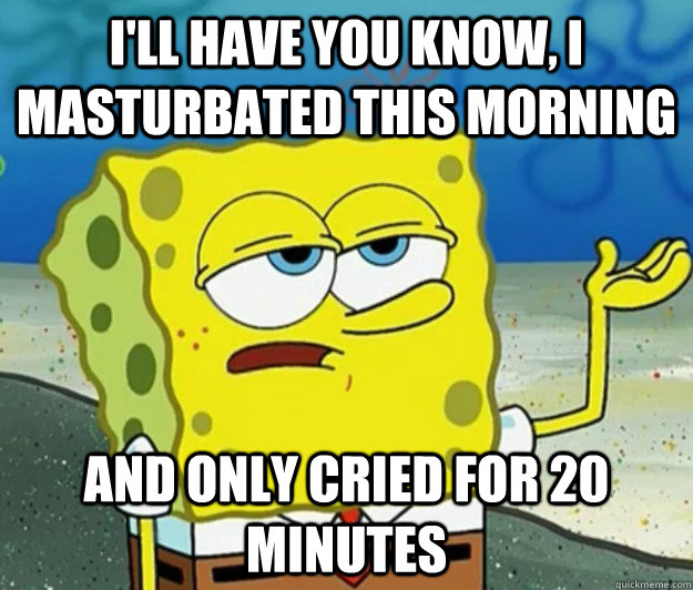 I'll have you know, I masturbated this morning And only cried for 20 minutes