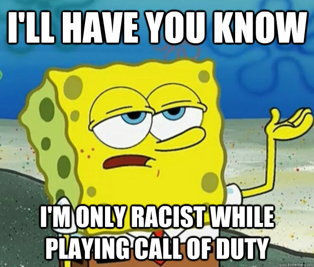 I'll have you know I'm only racist while playing call of duty