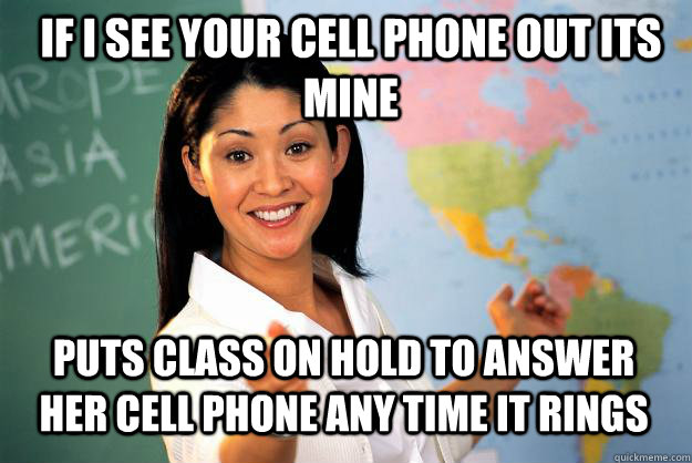 if i see your cell phone out its mine puts class on hold to answer her cell phone any time it rings