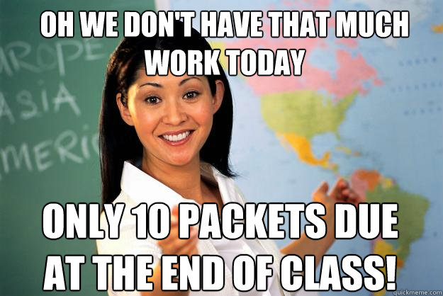 Oh we don't have that much work today Only 10 packets due at the end of class!