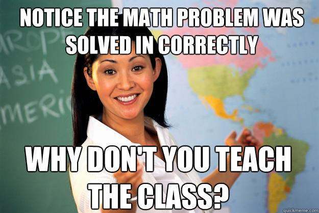 Notice the math problem was solved in correctly why don't you teach the class?