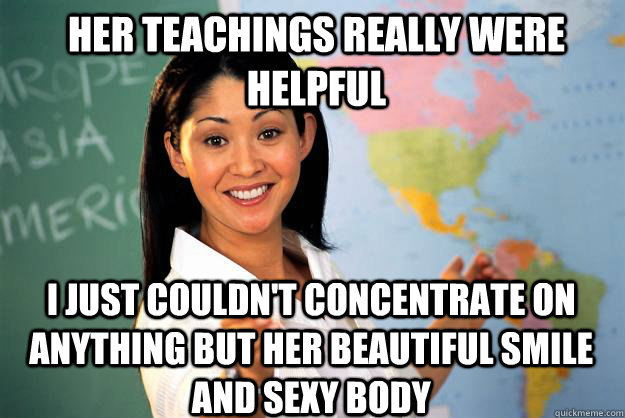 Her teachings really were helpful I just couldn't concentrate on anything but her beautiful smile and sexy body