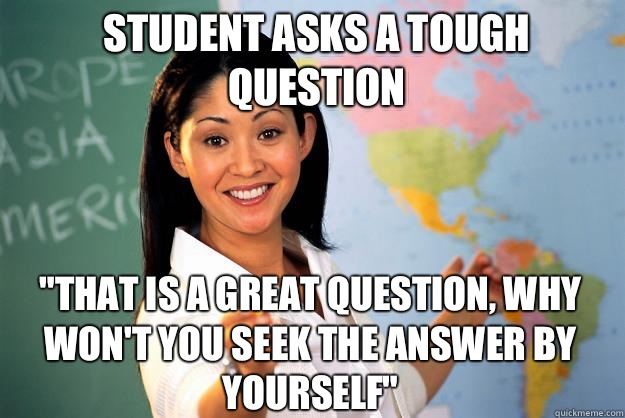 Student asks a tough question "that is a great question, why won't you seek the answer by yourself"