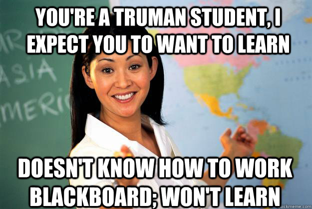 You're a truman student, I expect you to WANT to learn doesn't know how to work blackboard; won't learn