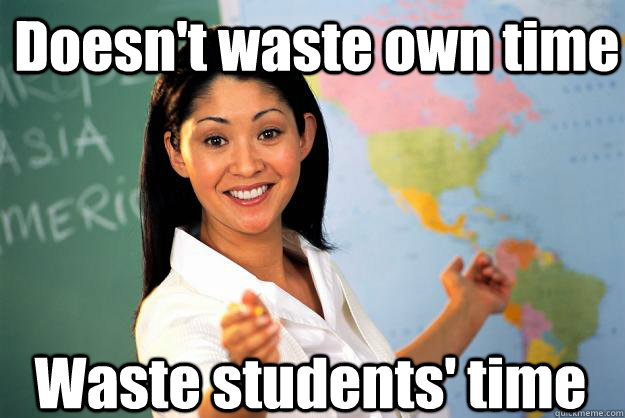 Bell rings and you get up to leave "The bell doesn't dismiss you, i do