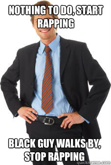 Nothing to do, start rapping Black guy walks by, stop rapping
