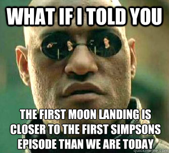 What if I told you The first moon landing is closer to the first simpsons episode than we are today