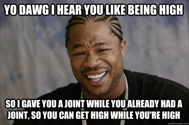 YO DAWG I HEAR YOU LIKE BEING HIGH so i gave you a joint while you already had a joint, so you can get high while you're high