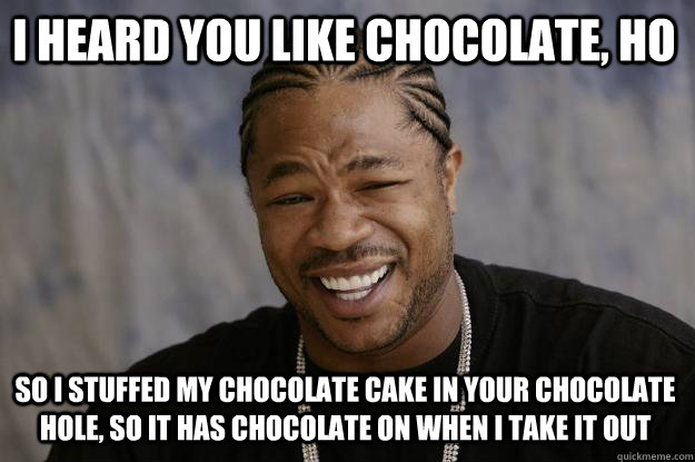 I heard you like chocolate, ho So I stuffed my chocolate cake in your chocolate hole, so it has chocolate on when I take it out