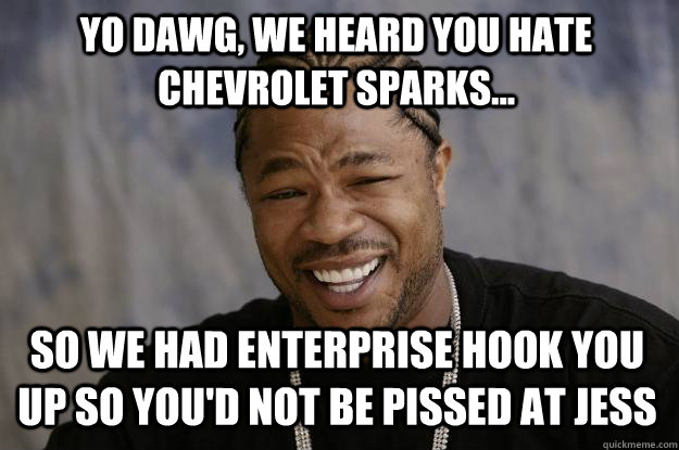 YO DAWG, WE HEARD YOU HATE CHEVROLET SPARKS... SO WE HAD ENTERPRISE HOOK YOU UP SO YOU'D NOT BE PISSED AT JESS