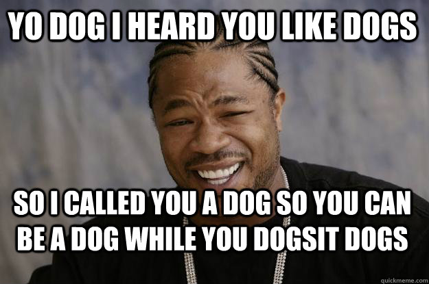 YO Dog i heard you like dogs so i called you a dog so you can be a dog while you dogsit dogs