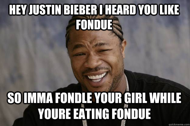 Hey Justin Bieber I Heard You Like Fondue So Imma Fondle Your Girl While YOure Eating Fondue